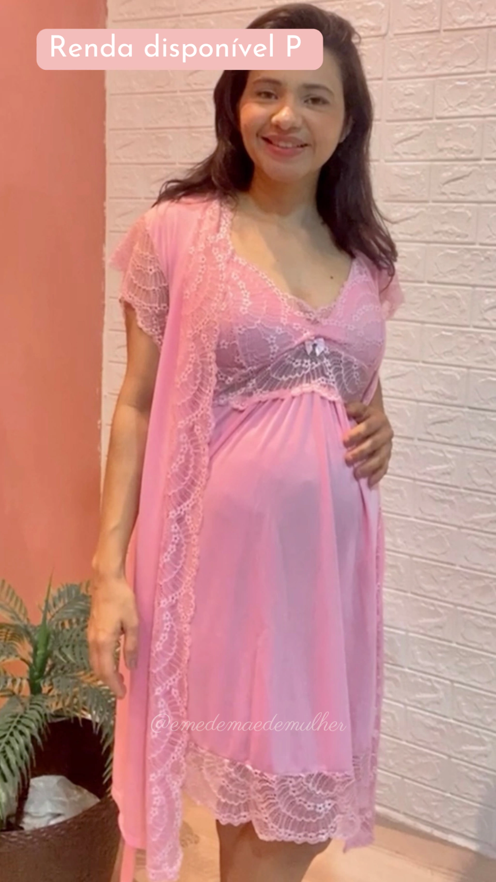 Acompanha Robe, que na abertura possui renda de cima abaixo com renda também na manga. Acompanha também uma faixa para fazer amarração, quando quiser usar fechadinho e deixar o conjunto mais lindo.